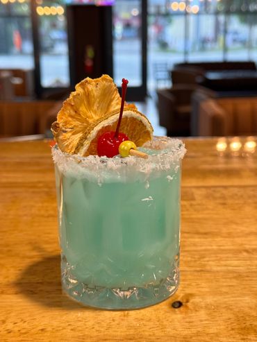 COCONUT RUM, BLUE CURAÇAO, SWEET AND SOUR, PINEAPPLE JUICE, CREAM OF COCONUT